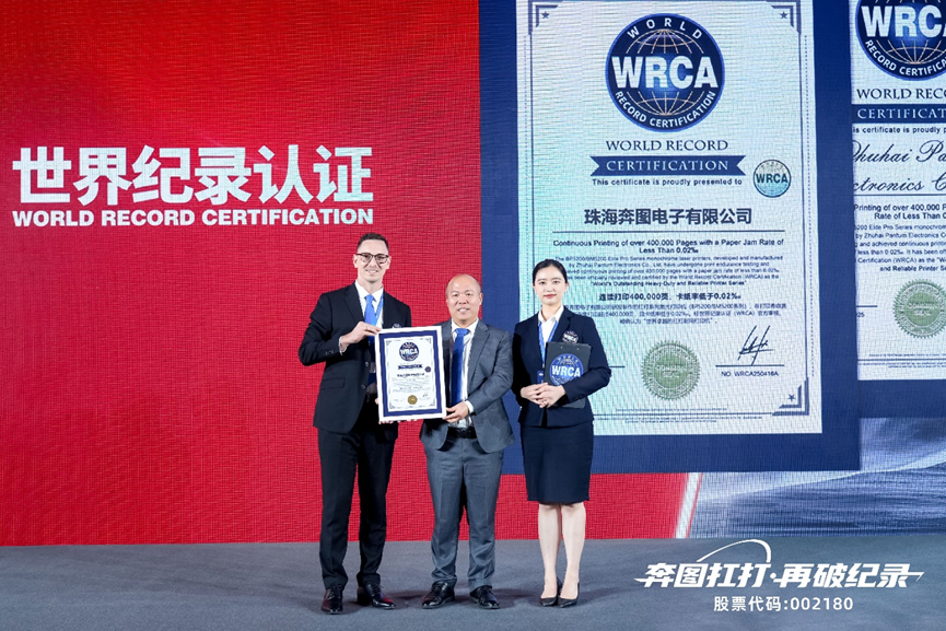 过去,打印领域长期被国外品牌主导。今天,奔图让世界看到了中国标准力量。奔图“扛打”系列成功了通过严苛的世界纪录认证,相关代表现场为奔图颁发“世界卓越的扛打耐用打印机”证书,并表示:WRCA进入中国以来,接收申报上万项,仅700项通过,奔图跻身其列,成为打印领域技术突破的典范。这不仅是对奔图专注、坚持精神的褒奖,更是中国打印产业整体实力跃升的里程碑。